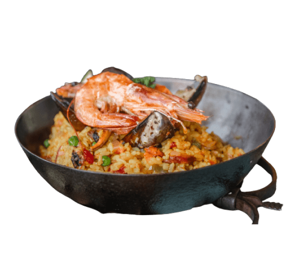 バルセロナスパイス、隠し味にハチミツを加えパラパラでライトに仕上げたパエリア。プリっとした触感のエビも楽しんで。
